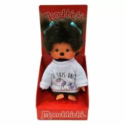 2 peluche Monchhichi 20 cm prête à partir à Hawaï avec sa jolie chemise à fleur et ses boutons dorés!