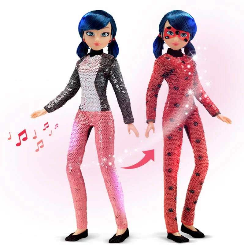 Une poupée mannequin 26 cm vêtue d’une tenue à sequin pour que Marinette se transforme en Ladybug en un claquement de doigts. Ne convient pas à un enfant de moins de 36 mois. Contient de petits éléments susceptibles d’être avalés.