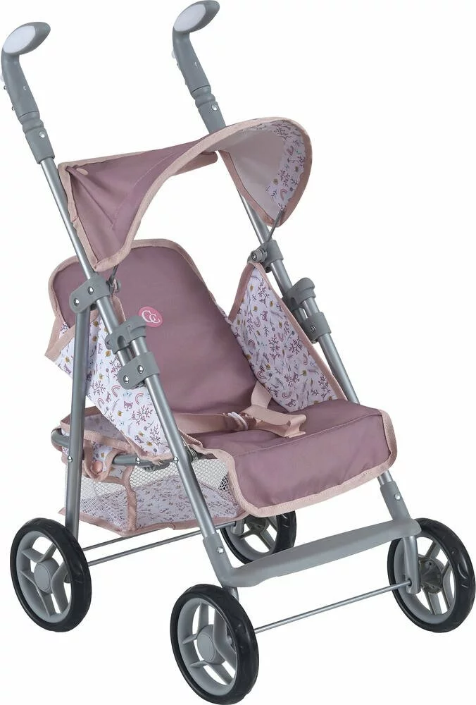 Poussette pliable pour poupée (non fournie). Châssis résistant. Poignées rotatives à 360° ! Avec ceinture. Hauteur poignées : 65.5 cm. Pour poupée mesurant jusqu’à 50 cm. Panier de courses à l’arrière. Notice incluse. En métal, tissu et plastique. Tissu : 100% polyester, laver uniquement la surface.