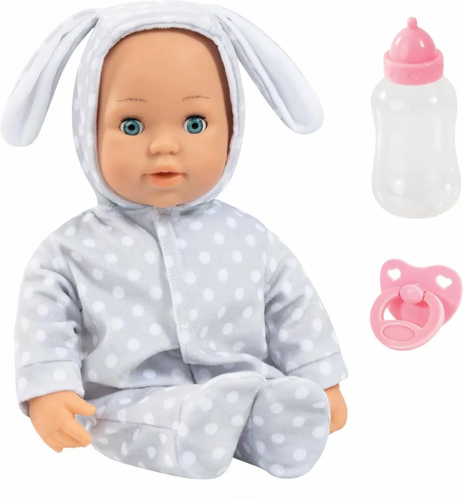 Poupée interactive de 38 cm, au corps souple. 24 sons réalistes de bébé. Avec les yeux dormeurs. Quand tu appuies sur son ventre, elle rit, pleure ou fait des sons de bébés. Livré avec 1 tétine et 1 biberon. 3 piles boutons (LR44) fournies. Instructions incluses. (Puce en français uniquement.)