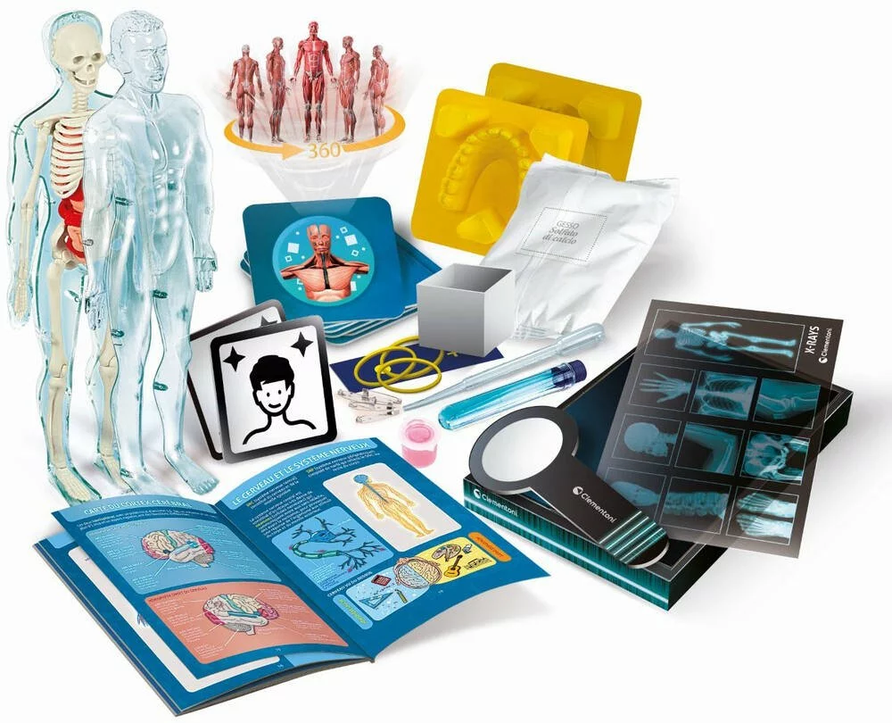 Un jeu fantastique qui enseigne le corps humain de manière simple et amusante. Le coffret contient un squelette et les organes du corps humain à assembler. Créez un modèle 3D réaliste de la double hélice d’ADN ! Explorez en profondeur tous les secrets de l’anatomie humaine à l’aide de l’application mobile spéciale !