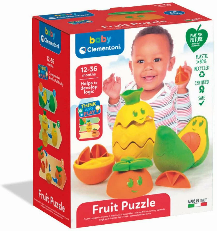 Des fruits Ă recomposer, chacun d’une manière diffĂ©rente. DĂ©veloppe les compĂ©tences manuelles et d’association logique. FabriquĂ© Ă partir de matĂ©riaux 100% recyclĂ©s.