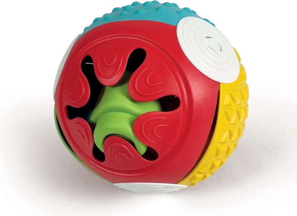 Une balle souple dans laquelle l’enfant peut insérer des cubes Clemmy à travers les différentes ouvertures. Avec différentes surfaces texturées pour stimuler l’exploration tactile. Les cubes sont lavables en machine.
