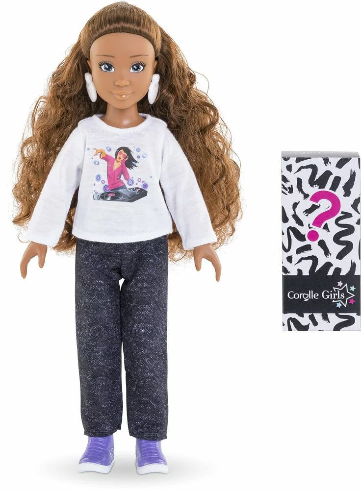 Le coffret Melody Shopping est composé de Melody, une poupée mannequin de 28 cm, et de 6 accessoires. Melody a un joli visage naturel aux traits fins qui sent bon la vanille. Ses yeux sont peints et elle possède de longs cheveux châtains lumineux et ondulés. Elle porte 1 pantalon noir, 1 T-Shirt manches longues imprimé, 1 paire de bottines amovibles et 1 paire de boucles d’oreille amovibles. Comme toutes les jeunes adolescentes de son âge, Melody adore faire du shopping. Elle vient de recevoir 1 colis, en l’ouvrant elle va découvrir les 6 accessoires surprises qu’il renferme : 1 robe, 1 sac à main, 1 paire de lunettes de soleil et 3 pinces à cheveux. Melody a un corps réaliste de jeune adolescente. Elle tient assise et debout toute seule. Les Corolle Girls sont déclinées en plusieurs modèles et disposent de coffrets dressing pour encore plus de jeux ! Poupée: ABS & PVC – Accs en plastique – Tee shirt : Jersey 65% polyester 35% coton – Pantalon faux denim 100% polyester – Robe spun poly 100 % polyester –