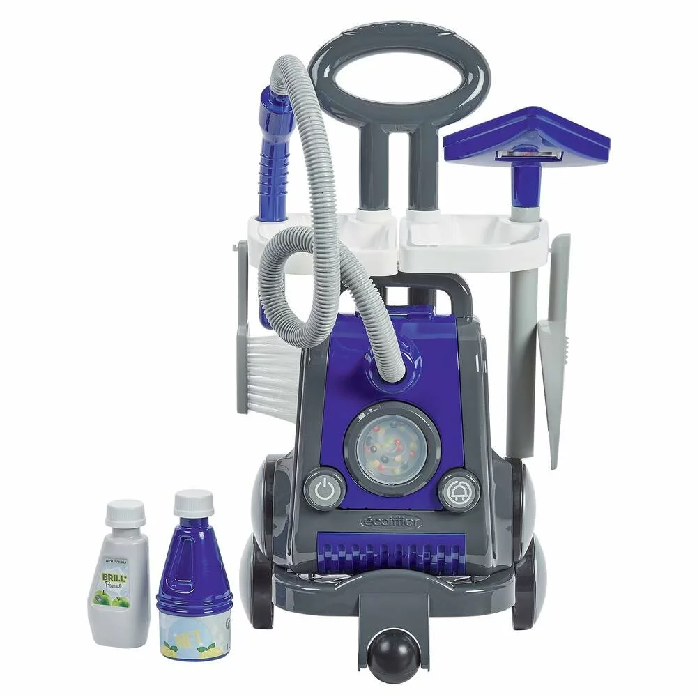 Kit complet de mĂ©nage. Un chariot de mĂ©nage avec un aspirateur factice, une pelle, une balayette et 2 produits d’entretien (factices). Dimensions adaptĂ©es Ă la taille de l’enfant. Les tablettes du chariot sont pivotantes. En plastique. Fabrication française. Dimensions : du chariot 27 x 23 x 54.5 cm, de l’aspirateur base du traĂ®neau uniquement 24 x 16 x 27 cm. Instructions d’assemblage imprimĂ©es sur la boĂ®te. DĂ©veloppe la motricitĂ© et l’imaginaire.