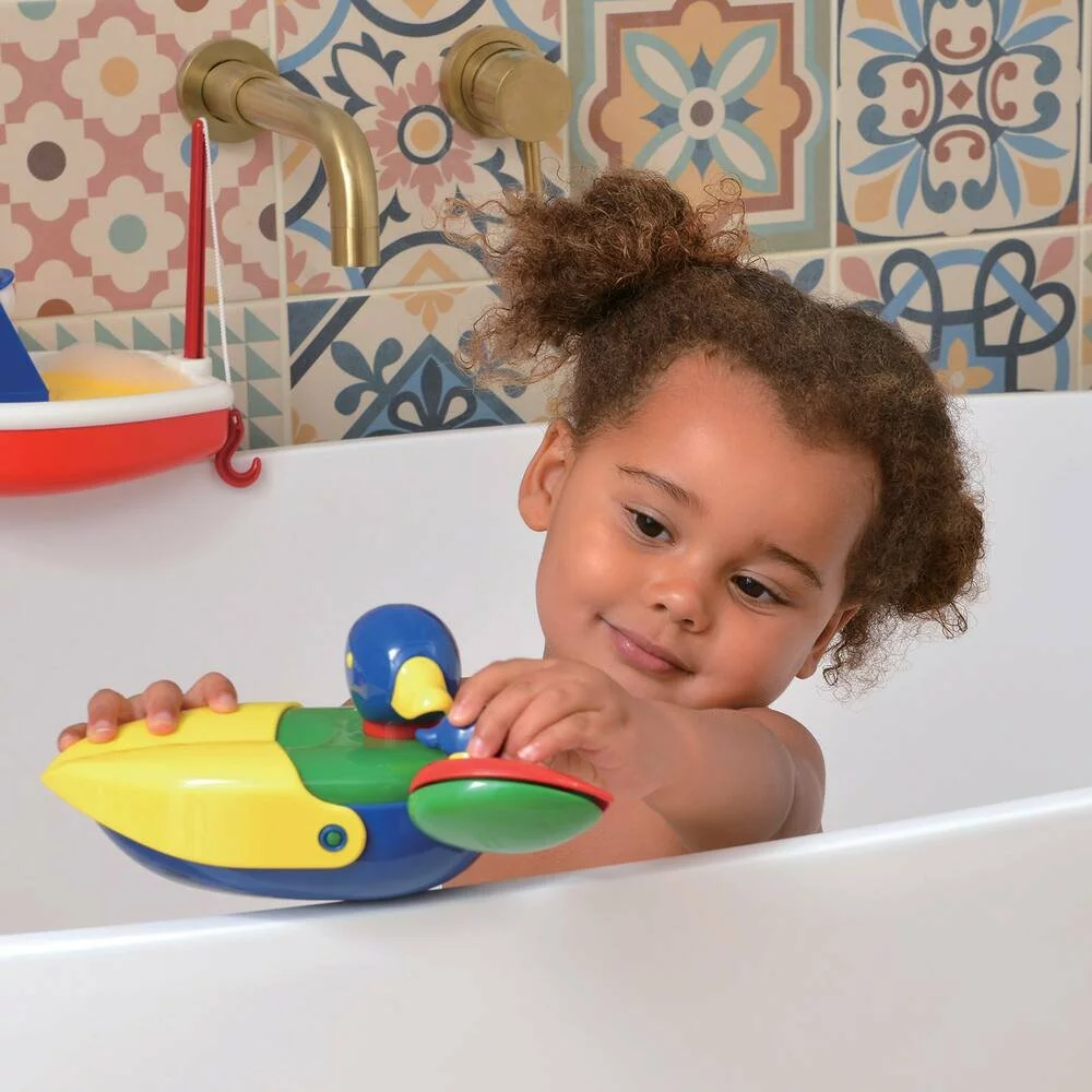 A partir de 12 mois, les tout-petits deviennent beaucoup plus curieux et aventureux. Ils adorent ranger, cacher et empiler les choses. Lors de cette phase, les bambins reconnaissent les formes et les couleurs et les sons familiers. Ambi toys propose des boîtes à formes ainsi que des jeux à empiler et à tirer. Montrez-lui comment faire les choses et il les fera très vite tout seul ! Trois petits canards se cachent dans maman canard. Des heures d’amusement en perspective dans le bain avec cette joyeuse petite famille.