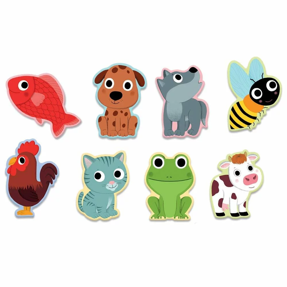 Jeu de mime et de coopération spécialement conçu pour les tout-petits. Aider les petits animaux à retrouver le chemin de leur maison en mimant les cris ou les gestes de leur maman.
