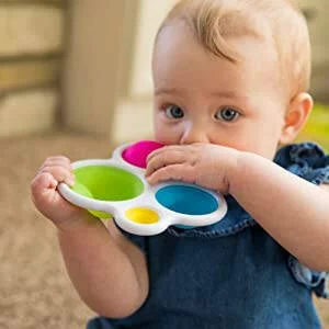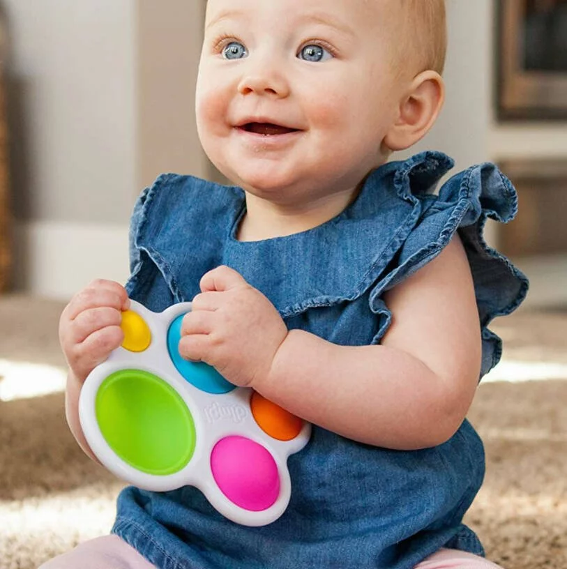 Le Dimpl est un jouet tactile et sensoriel aussi beau que génial. Les petits doigts ne pourront pas résister à faire « claquer » ses bulles de couleurs très vives et de différentes tailles en les faisant entrer et sortir, déclenchant à chaque fois un petit « POP » ! À partir de 6 mois. Ergonomique : Jouet sensoriel facilement préhensible – Educatif : Développe motricité fine et sensorialité – Nomade : À emmener partout – Jeu tactile. Pousse tes 5 coussins en silicone pour déclencher un petit « pop » !