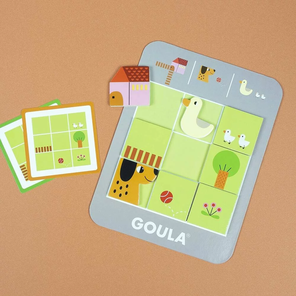 Un jeu de logique sur la thématique de la ferme. 2 modes de jeu. Un mode de jeu individuel où l’enfant suit les règles pour placer les différentes pièces et relever le défi indiqué sur chaque carte. Un mode de jeu compétitif où le gagnant est le premier joueur qui obtient les 5 cartes.