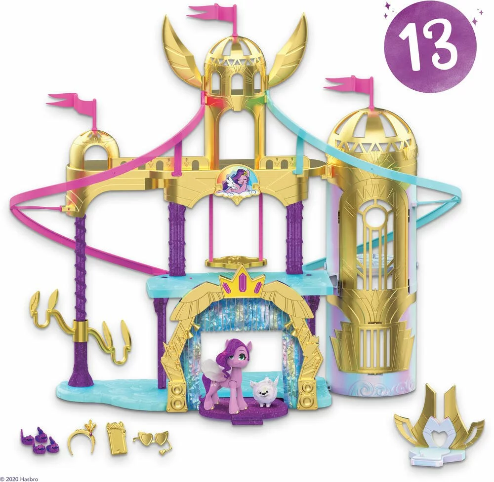 Découvrez La Maison Royale inspirée du palais royal du film My Little Pony : A New Generation. Ce château My Little Pony mesure 56 centimètres ! Les enfants seront ravis de s’amuser avec la figurine de 7,5 centimètres à l’effigie de Princesse Pétale, ainsi qu’avec celle de son animal Cotondoux.