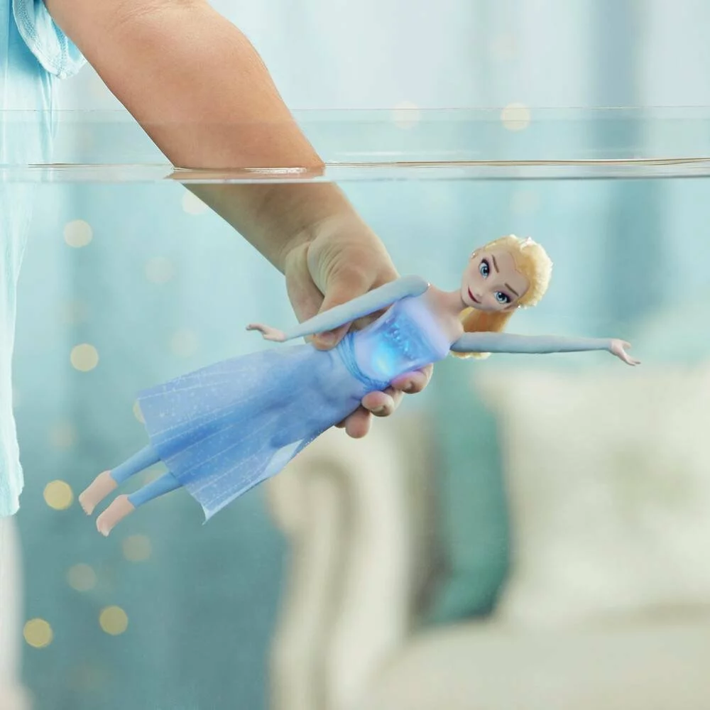La poupée représente Elsa à la fin du film La Reine des Neiges 2 lorsqu’elle se rend à Ahtohallan par la mer. La poupée Elsa possède une tenue bleue sombre avec un corset moulé et une jupe en tissu. Elle a 5 points d’articulation. Le corset s’allume et des effets pailletés apparaissent sur la jupe de la poupée lorsqu’elle est sous l’eau.