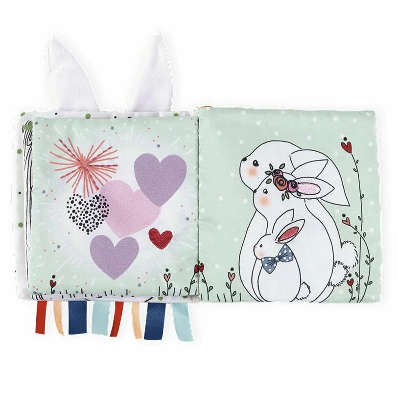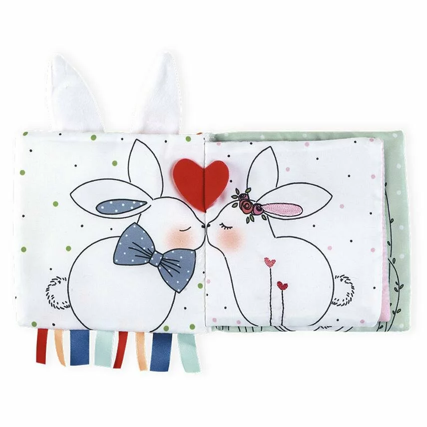 Voyagez au coeur des émotions grâce aux livres tout doux de Kaloo. Chaque livre doudou offre de belles illustrations à regarder, une histoire à raconter, des tissus à caresser et des activités amusantes pour stimuler les sens de bébé et passer de tendres moments ensemble. Découvrez l’histoire de deux petits lapins dont la rencontre va faire naître un tout mignon petit lapinou. Aimer, passer de bons moments en famille, voilà la recette qu’offre ce livre pour être heureux. Inclus : un anneau pour l’accrocher et des rubans à attraper !