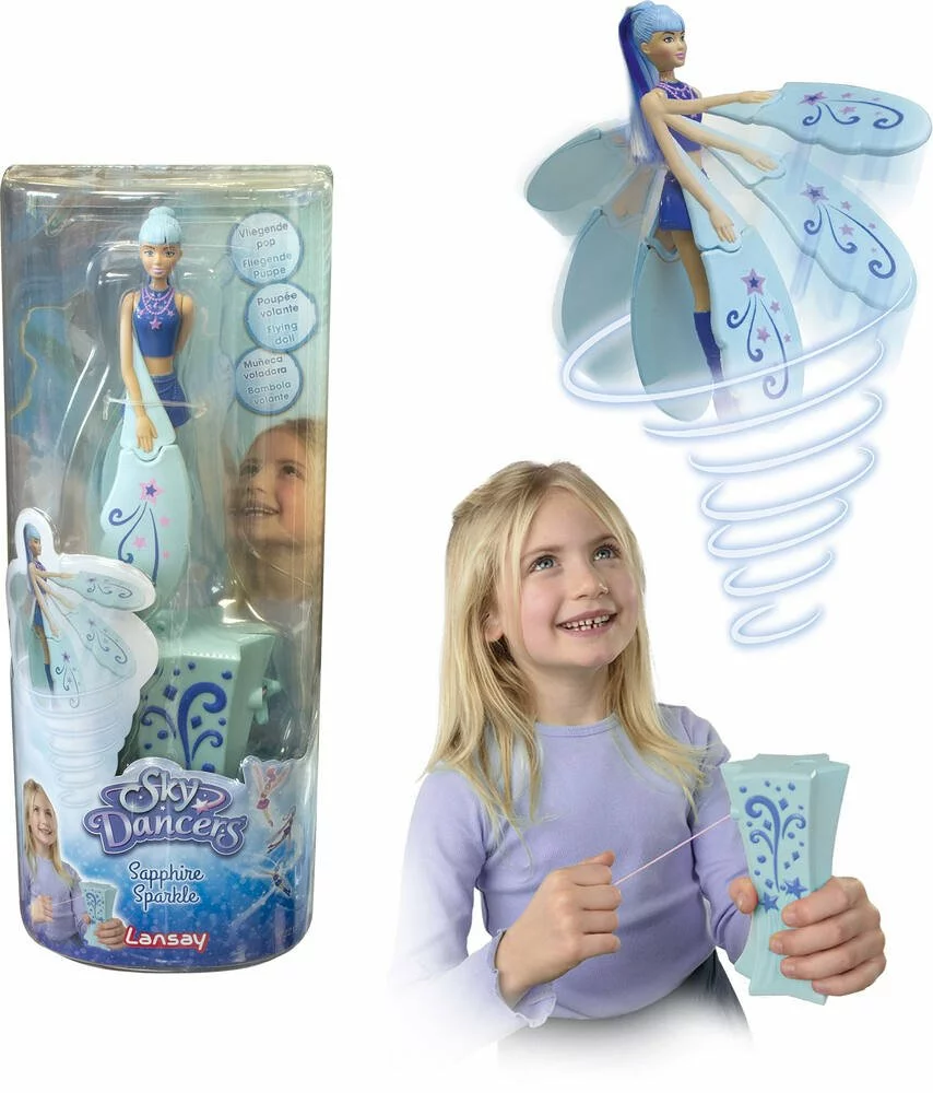 Prête à faire voler ta Sky Dancers ? Pose-la sur sa base et tire la cordelette pour la regarder s’envoler !