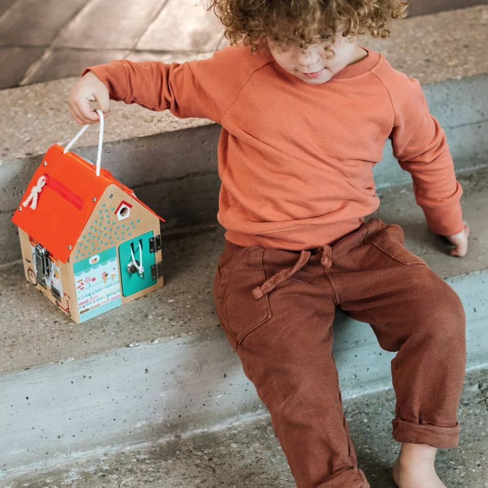 Attention ! Un cambrioleur rusĂ© se promène. Il faut vite vĂ©rifier que toutes les serrures de la petite maison sont bien verrouillĂ©es. Ou peut-ĂŞtre es-tu le complice du cambrioleur et est-ce toi qui ouvre toutes les serrures pour lui ? Cette petite maison permet aux bambins de faire connaissance de manière ludique avec diffĂ©rents systèmes de fermeture et stimule aussi l’imagination.