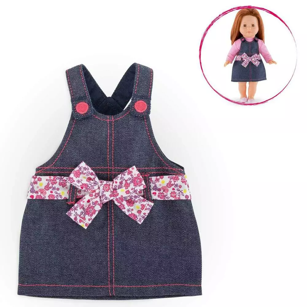 Robe en jean forme « salopette » pour poupée Ma Corolle 36 cm. Lavable à la main.