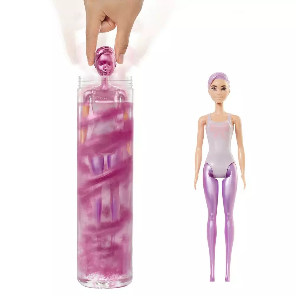 Quelle poupĂ©e Barbie Color Reveal Paillettes allez-vous dĂ©couvrir ? Elles ont toutes des cheveux très colorĂ©s ! Violet, rose, bleu ou blond vous aurez la surprise. Une fois rĂ©vĂ©lĂ©e, la poupĂ©e mannequin Barbie Color Reveal brillent grâce Ă sa jupe pailletĂ©e ! Elle a aussi d’autres accessoires comme une paire de chaussures, une extension de cheveux et une paire de boucles d’oreilles. Avec tous ces accessoires votre poupĂ©e Barbie sera la plus belle. Passez un coup d’Ă©ponge sur la Barbie Color Reveal pour encore plus de rĂ©vĂ©lations ! Trempez l’Ă©ponge dans l’eau froide et passez-la sur la poupĂ©e mannequin : ses yeux, ses lèvres et ses cheveux changent de couleur ! Votre poupĂ©e Barbie vous rĂ©vèle tous ses mystères ! Un coup d’eau chaude et elle se transforme de nouveau. Cette poupĂ©e mannequin Barbie est proposĂ©e dans un coffret secret qui contient 4 surprises cachĂ©es dans des sachets mystères. Les poupĂ©es Barbie Color Reveal vous rĂ©servent 7 surprises !
