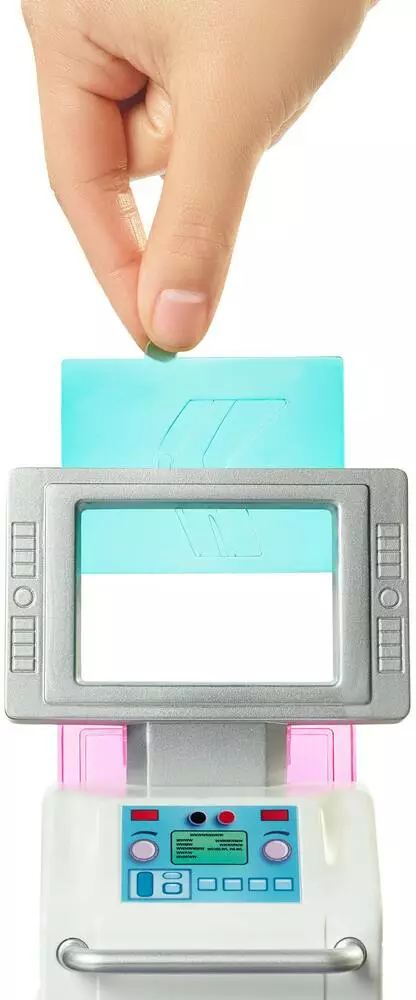 Ce coffret Clinique de Barbie inclut une poupée Barbie docteure brune, 4 zones de jeu (poste médical, table d’examen, appareil de radiographie, boutique de cadeaux) et plus de 30 éléments ou accessoires pour stimuler l’imagination : 3 pots de pâte à modeler qui serviront à réaliser un plâtre de jambe ou un plâtre de bras pour la poupée Chelsea, ou des bandages, une paire de béquilles, des autocollants, des radiographies, des articles pour la boutique cadeaux et plus encore.