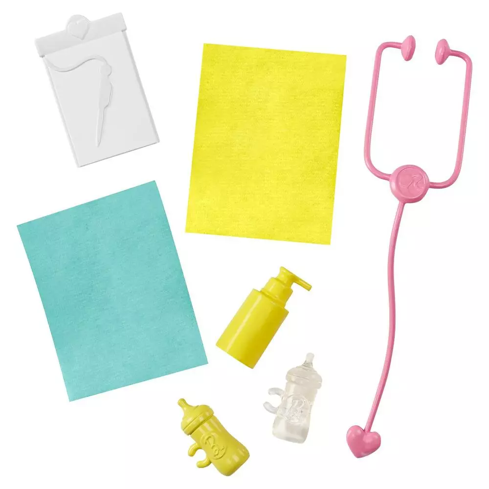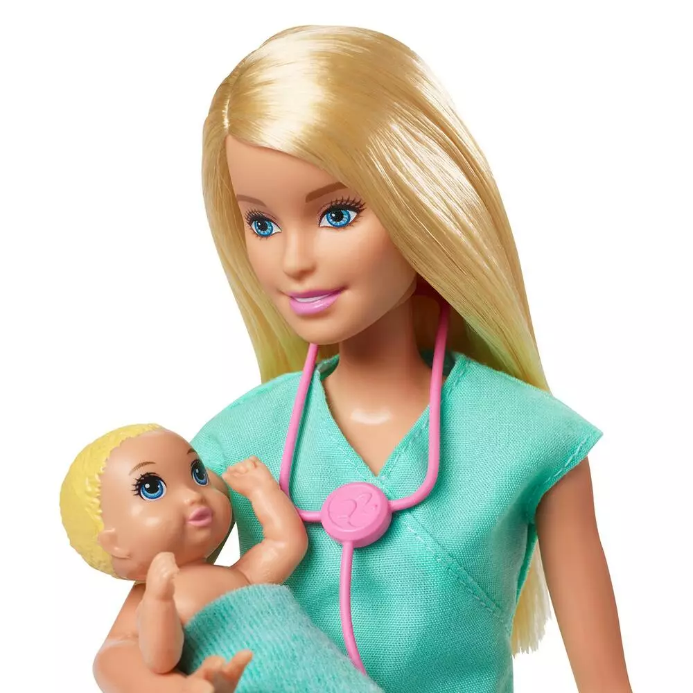 Grâce à Barbie, tout est possible, devenir dentiste, fermière, pédiatre ou professeur d’art. Dans chaque coffret, une poupée Barbie avec soit un enfant, soit des animaux, une fonction, du mobilier et des accessoires en lien avec l’activité pour développer les histoires.