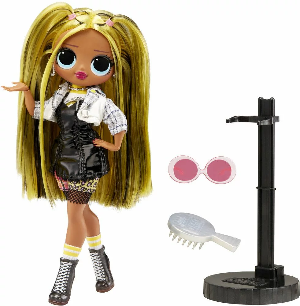 1 poupée mode LOL Surprise OMG, une tenue, des chaussures, des accessoires, une brosse à cheveux et un support de poupée- La poupée de mode OMG Alt Grrrl est une rebelle qui aime surprendre les gens avec l’inattendu. Elle a un très joli visage, des cheveux magnifiquement coiffés et des membres mobiles pour de nombreuses poses. En plus, c’est la grande soeur de l’ultime rockeur Grunge Grrrl-