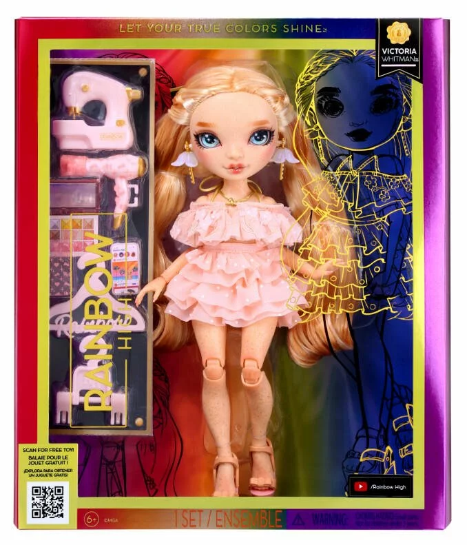 Poupée articulée avec 1 tenue, 1 paire de chaussures, 2 cintres, 1 peigne, 1 support et des accessoires.
