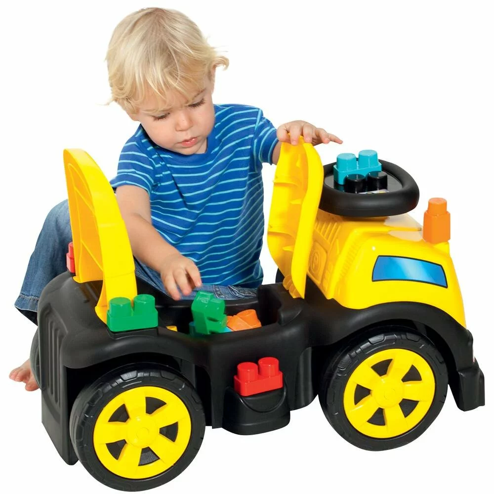 Porteur 3 en 1 en forme de camion : porteur, pousseur et jeu de construction. 10 blocs de construction inclus. Tout se range dans le coffre de rangement situé sous le siège. Tu peux aussi fixer les blocs colorés sur certaines parties du camion comme le volant ou jouer seul avec les blocs. Hauteur de l’assise : 19 cm. Poids maximum supporté par le camion : 25 kg. En plastique.
