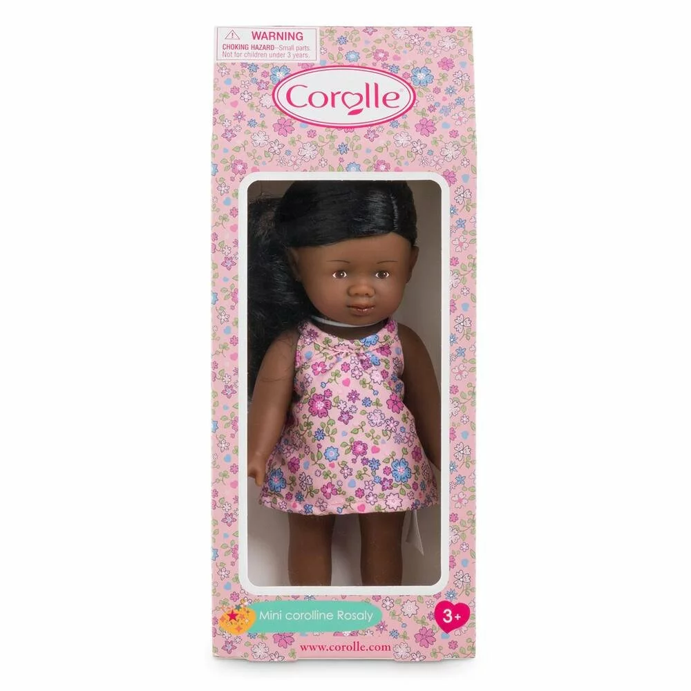 Mini Corolline Rosaly est une petite poupée de 20 cm « prête à offrir ». Elle a un corps tout en vinyle doux au toucher et à la délicate senteur de vanille. Ses yeux marron sont peints sur son visage. Elle a des cheveux longs noirs; bouclés et soyeux pour faciliter le coiffage. Elle est habillée d’une robe fleurie « trois trous »; d’une culotte et d’une paire de chaussures moulées assorties. La mini poupée Mini Corolline Rosaly est vendue dans son emballage « boîte cadeau » fleuri; prête à offrir ! C’est le cadeau idéal pour un goûter d’anniversaire; une surprise; … Cette petite poupée nomade se glisse facilement dans un sac ou dans un cartable pour accompagner votre enfant tout au long de la journée.
