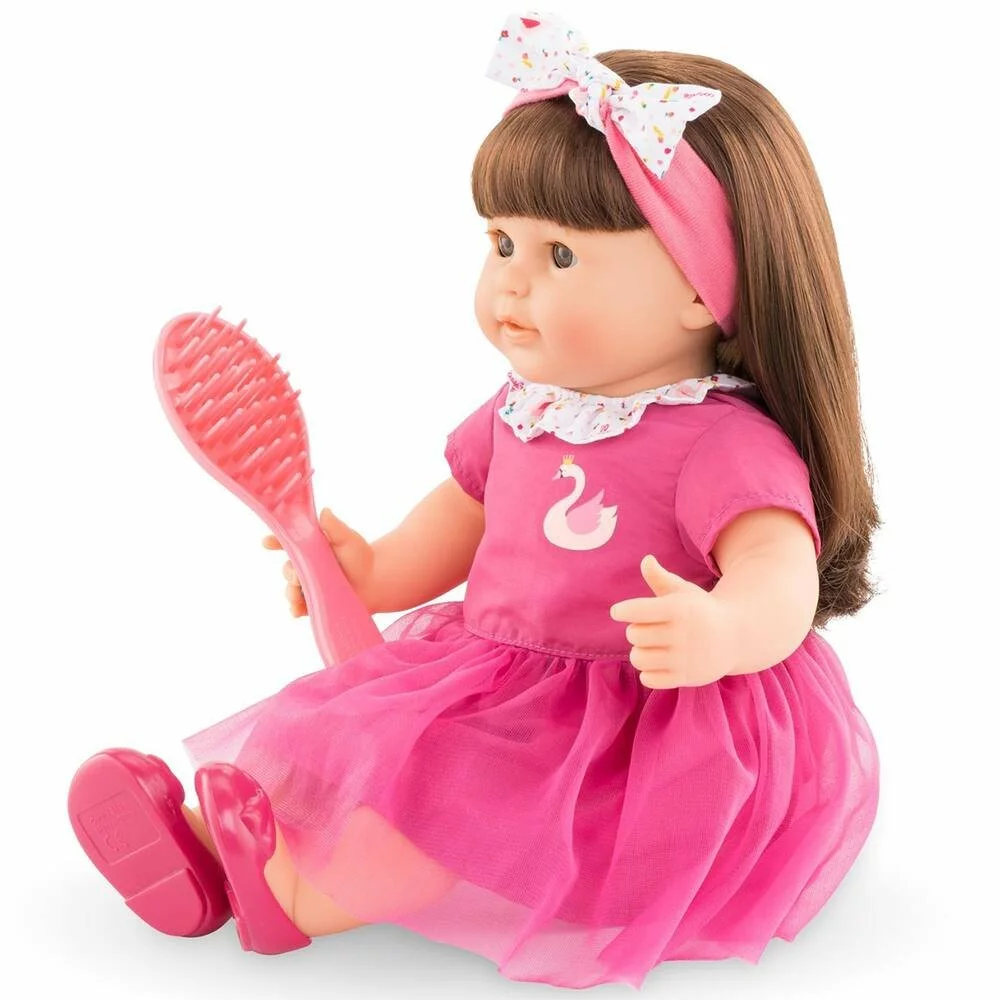 Alice est un grand poupon Corolle pour jouer et faire comme les grands. Avec les longs cheveux faciles à coiffer et la brosse de son poupon; l’enfant imagine et réalise ses toutes premières coiffures !Alice mesure 36 cm; une taille parfaitement adaptée aux petits bras de l’enfant pour la câliner; la materner et reproduire les gestes qui font devenir grand. Son visage; ses bras et ses jambes; à la délicate senteur de vanille; sont en vinyle doux au toucher. Son corps est souple pour faciliter ses mouvements et elle tient assise. Avec ses yeux dormeurs; elle fait dodo quand on la couche sur le dos. Elle est dispose d’une collection complète de vêtements et d’accessoires mon grand poupon Corolle pour imiter les gestes du quotidien et s’inventer des scénarios de jeu multiples et variés. Alice ne peut pas prendre de tétine dans sa bouche.