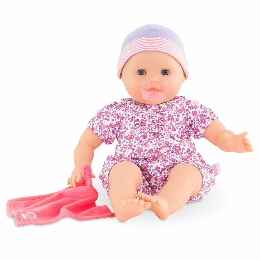 Émilie Suce son Pouce est un coffret avec un grand poupon pour jouer et faire comme les grands. Avec ses deux accessoires; l’enfant apprĂ©hende et rejoue les rituels du coucher. En mettant son poupon au dodo; l’enfant lui donne son doudou-lange et sa tĂ©tine en s’initiant ainsi aux Ă©tapes qui le conduisent; en les reproduisant; vers le doux pays des rĂŞves… Émilie mesure 36 cm; une taille parfaitement adaptĂ©e aux petits bras de l’enfant pour la câliner; la materner et imiter les gestes qui font devenir grand.Son visage; ses bras et ses jambes; Ă la dĂ©licate senteur de vanille; sont en vinyle doux au toucher. Son corps est souple pour faciliter ses mouvements. Son pouce peut se maintenir dans bouche comme si elle suçait son pouce ! Avec ses yeux dormeurs; elle fait dodo quand on la couche sur le dos. Elle est habillĂ©e d’un pyjama fleuri ainsi que d’un bonnet assorti. Émilie dispose d’une collection complète de vĂŞtements et d’accessoires mon grand poupon Corolle pour imiter les gestes du quotidien et s’inventer des scĂ©narios de jeu multiples et variĂ©s. Elle ne peut pas porter de chaussures.