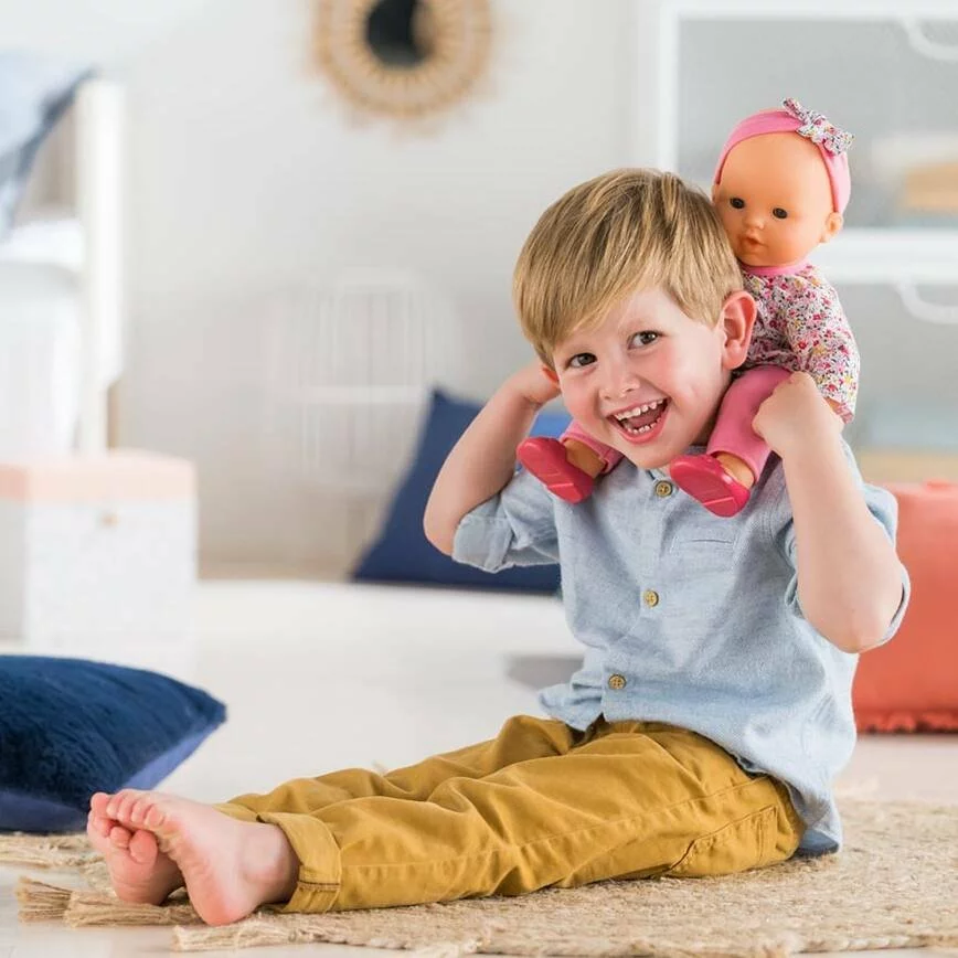 Louise est le grand poupon Corolle pour jouer et faire comme les grands. Elle mesure 36cm; une taille parfaitement adaptée aux petits bras de l’enfant pour la câliner; la materner et reproduire les gestes qui font devenir grand.Son visage; ses bras et ses jambes; à la délicate senteur de vanille; sont en vinyle doux au toucher. Son corps est souple pour faciliter ses mouvements et elle tient assise. Son pouce peut se maintenir dans sa bouche. Avec ses yeux dormeurs; elle fait dodo quand on la couche sur le dos. Elle est habillée d’une blouse et d’un pantalon; coiffée d’un bandeau et chaussée d’une paire de ballerines.