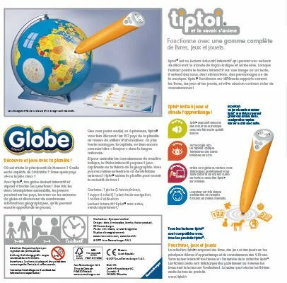 Avec le globe interactif tiptoi®, dĂ©couvrez les 197 pays de la planète, au travers de milliers d’informations : les populations, les capitales, « Bonjour » dans toutes les langues, et jouez Ă 4 jeux captivants !