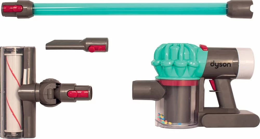 Réplique de l’aspirateur sans fil Dyson Cord-Free, pour un jeu beaucoup plus réaliste. Il possède une imitation de Vortex avec des perles qui tournent et aspire réellement. La tête est détachable : il se transforme alors en aspirateur à main. Le compartiment à poussière s’ouvre et se vide facilement grâce à un bouton. Parfaitement adapté pour les petites mains. 3 piles LR6 non fournies. En plastique. Dimensions : de l’aspirateur 23.5 x 10 x 71 cm, de l’aspirateur à main : 23.5 x 10 x 15 cm.
