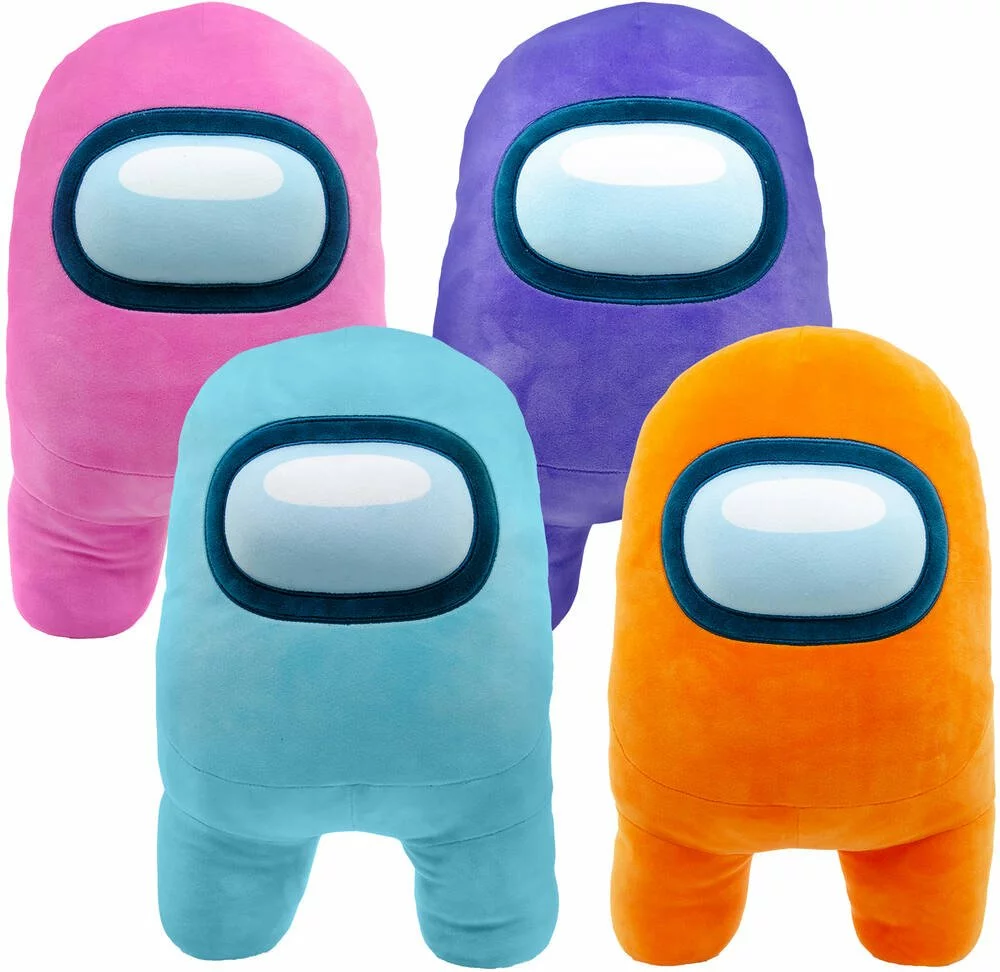 Peluche de 40 cm Among Us. 4 modèle assortis : cyan, orange, rose et violet. Lavable uniquement en surface avec un chiffon humide. Matériaux : polyester, spandex. Rembourrage : fibre de polyester. Licence : Among Us.
