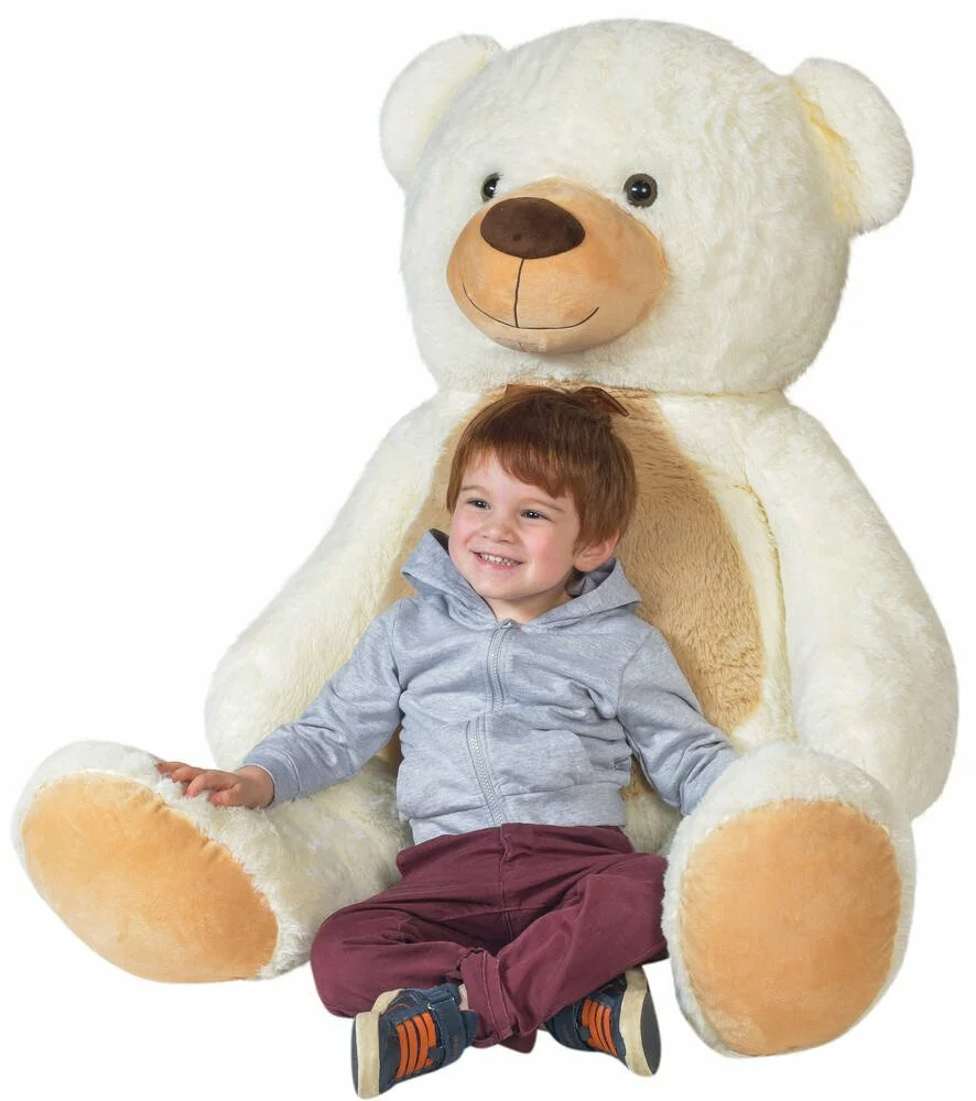 Peluche ours bicolore crème de 140 cm. Peluche très douce. En polyester. Nettoyage à sec. Cette peluche peut aussi être une jolie décoration dans une chambre d’enfant.