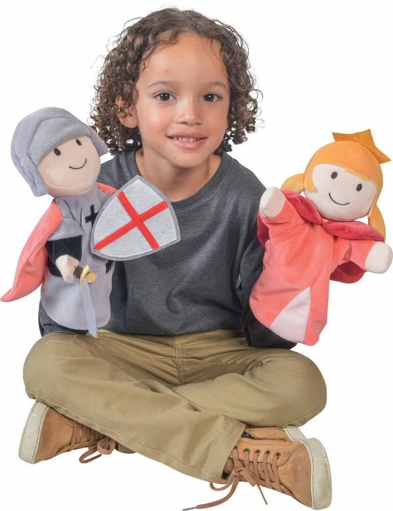 Set de 2 marionnettes. 2 modèles assortis : le dinosaure et le chevalier, ou, la licorne et la princesse. Hauteur d’une marionnette : 25.4 cm environ. Lavable à la main, la température de l’eau ne doit pas dépasser 30°, l’eau froide est recommandée. Matières : PP, coton, nylon. Intérêts éducatifs pour l’enfant : développe l’imagination, favorise l’expression des sentiments et des émotions.