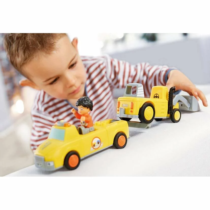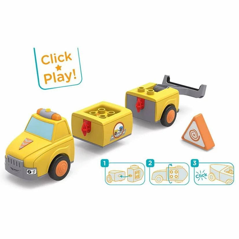Un jouet haut de gamme palpitant avec un moteur à friction (moteur à volant) permettant de stimuler la motricité fine, l’endurance, la patience et de procurer beaucoup de plaisir. La figurine Chris est articulée : la tête tourne, les bras se lèvent et les jambes peuvent être pliées. Le véhicule Carry peut être démonté en trois parties et combiné avec d’autres véhicules Toddys. Des effets son et lumière soulignent les caractéristiques du véhicule. Le dispositif de remorquage rabattable et le triangle amovible stimulent l’expérience de jeu. Le Carry de Chris est compatible avec des mo-dules d’autres fabricants. Système siku « Click&Play » : combinaison facile grâce à un système de rotation et d’encliquetage des pièces du véhicule permettant de stimuler les facultés motrices et de procurer un plaisir de jeu durable. Une finition robuste de qualité siku.
