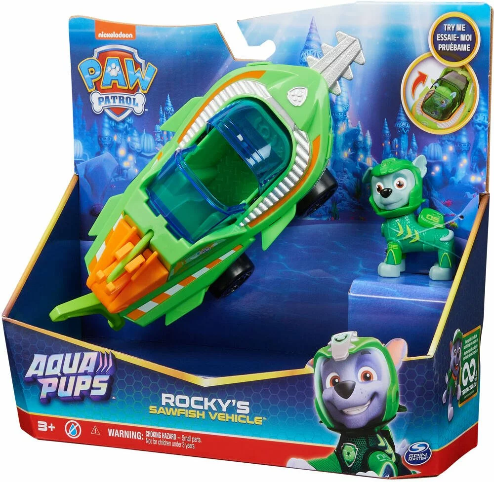 Tes personnages préférés du dessin animé la Pat’ Patrouille sur le thème Aqua Pups. Véhicule de Rocky avec transformation unique pour partir en mission sous-marine. Avec une figurine amovible de Rocky incluse. Contenu : un véhicule et une figurine Pat’ Patrouille Aqua Pups.