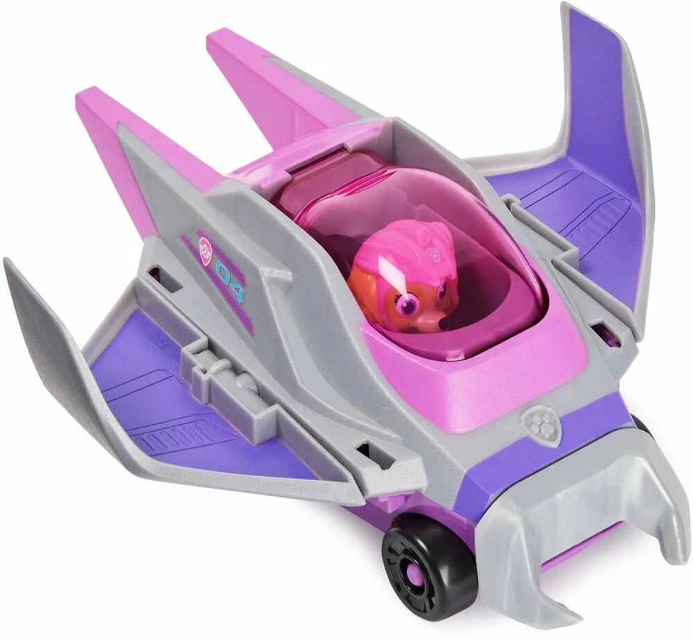Véhicule de Stella avec transformation unique pour partir en mission sous-marine. Avec une figurine amovible de Stella incluse. Contenu : un véhicule et une figurine Pat’ Patrouille Aqua Pups.