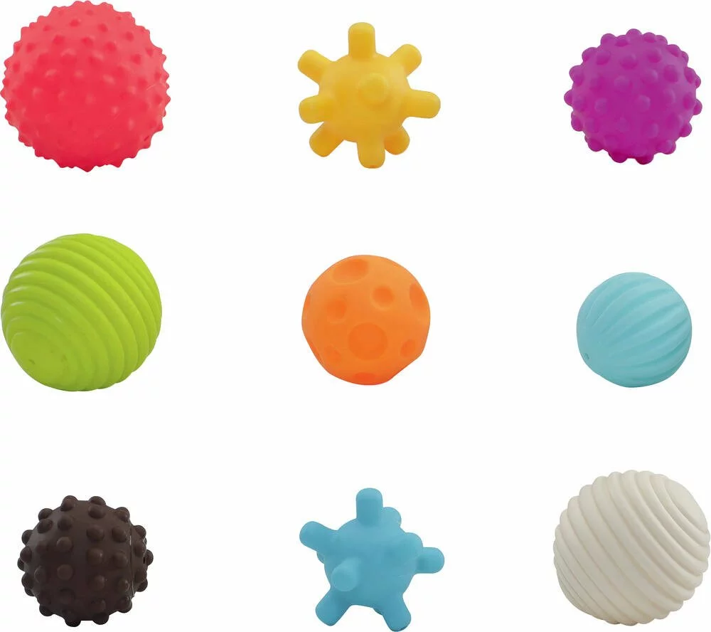 Contient 9 balles sensorielles. Matière douce au toucher et souple. Amusant et facile à manipuler : bébé découvre différentes formes et couleurs. Livré dans un sac zippé en plastique transparent : pratique tout se range et se transporte dedans. Dimensions du sac : 24.5 x 11 x 23 cm. Développe la motricité. Stimulation sensorielle.