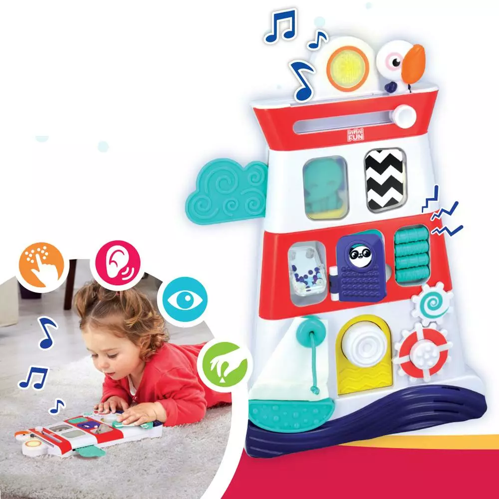 Le tableau d’activités qui éveille les sens des tout-petits ! 10 activités pour développer le toucher, la vue, l’ouïe, la motricité fine tout en s’amusant. 15 textures différentes à retrouver sur le phare !
