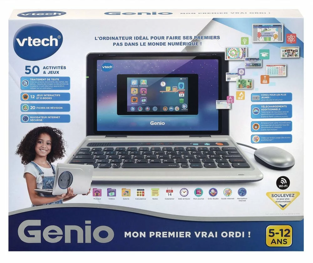Génio Mon Premier Vrai Ordi est un ordinateur portable idéal pour l’éducation de vos enfants. Avec Génio ils peuvent se divertir en explorant Internet ou en écoutant de la musique. C’est un ordinateur ultra sécurisé.