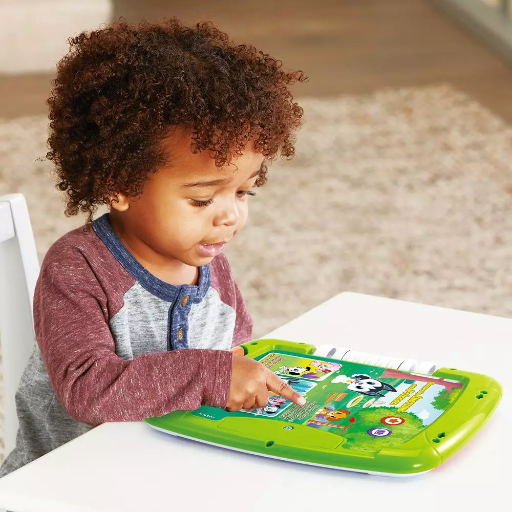 Un concept 2 en 1 pour twister en un clin d’œil de la tablette d’activités au livre d’histoires. En mode tablette : 14 touches tactiles pour découvrir et apprendre en explorant les différentes thématiques. En mode livre d’histoires : des pages sensitives pour s’évader au fil des différentes histoires. Le bouton lumineux, actif dans les deux configurations, déclenche des chansons et des phrases sur les différentes catégories. 6 pages d’histoires et 6 pages d’activités complémentaires pour un programme riche et complet : Apprentissage des mots et de la lecture. Émotions. Couleurs et formes. Sciences et nature. Jeux d’extérieur. Plus de 100 chansons, mélodies, sons et phrases.