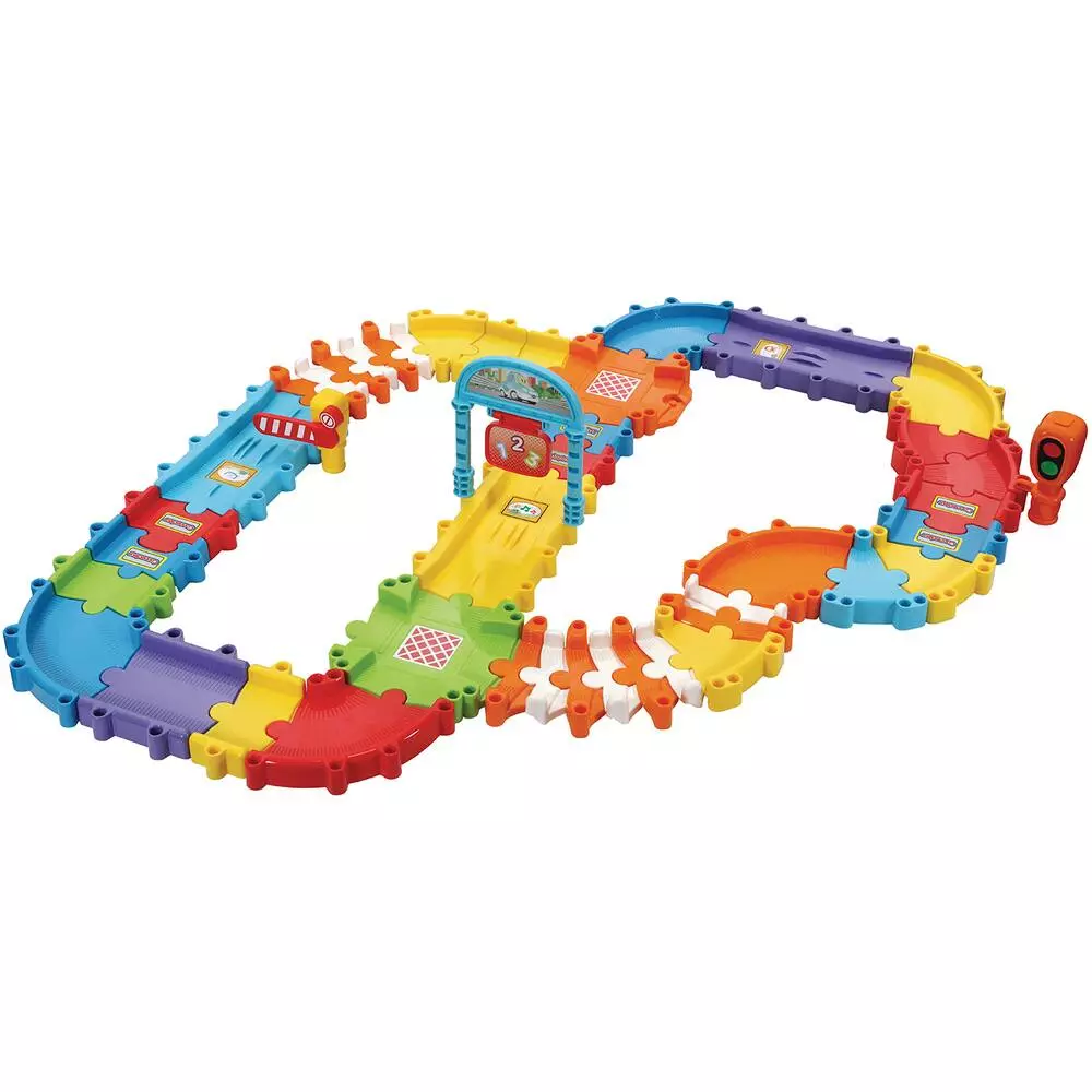 Plus de 30 pièces de jeu pour des centaines de combinaisons possibles ! 5 types de pistes différents dont 2 pistes twist ! Les pistes twist se plient et se déplient facilement pour encore plus de jouabilité et de configurations de circuits possibles ! Trois accessoires viennent enrichir l’univers Tut Tut Bolides : un feu tricolore, une barrière et un panneau. Pistes raccordables à tous les univers Tut Tut Aventures (Bolides, Animo et Copains). 3 Zones Magiques qui déclenchent des phrases et des sons supplémentaires quand un véhicule ou un animal passe dessus. Age : de 1 à 5 ans.